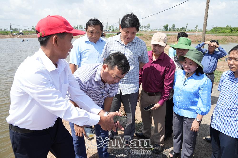 Phó Chủ tịch UBND tỉnh Lê Văn Sử khảo sát mô hình cá rô phi tại xã Trần Đề, TP Cần Thơ.