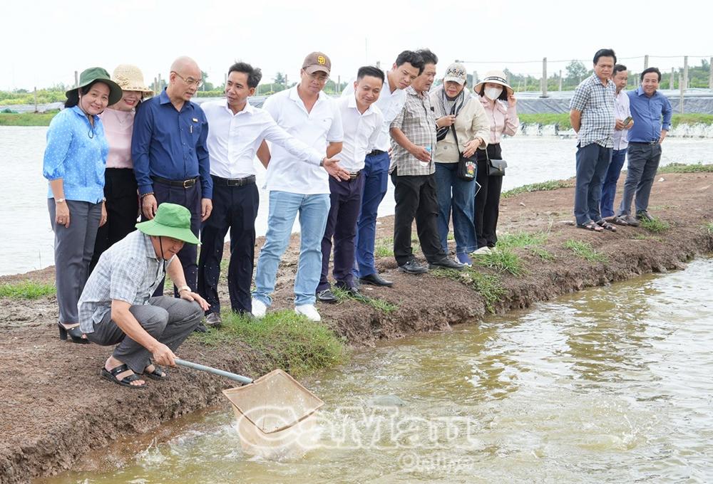 Phó Chủ tịch UBND tỉnh Lê Văn Sử tham quan Trang trại giống cá rô phi của Công ty TNHH Khoa kỹ sinh vật Thăng Long, xã Thạnh Thới An, TP Cần Thơ.