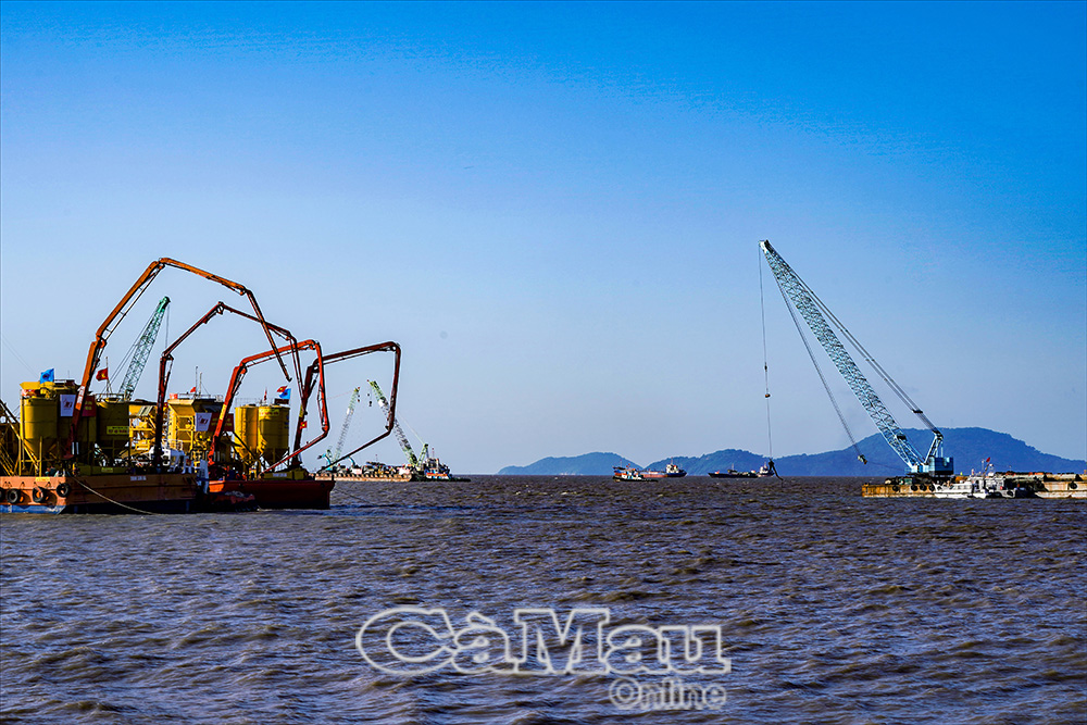 Tác phẩm “Khởi công xây dựng công trình cầu vượt biển Hòn Khoai”, tác giả Huỳnh Lâm, giải Ba.