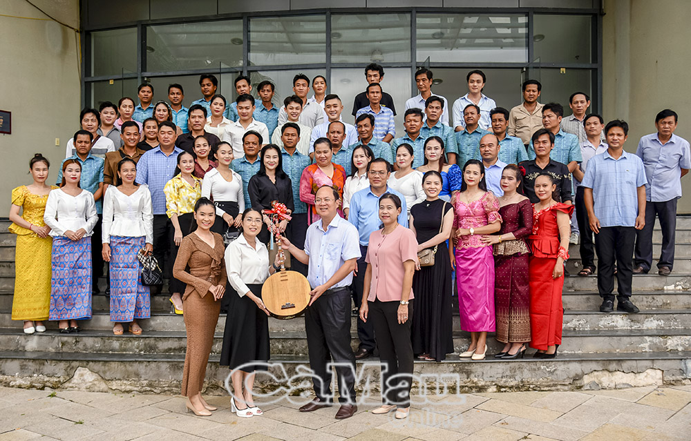 Nhà hát Cao Văn Lầu trao quà lưu niệm, cảm ơn Bí thư Tỉnh uỷ Nguyễn Hồ Hải đã đến thăm, kiểm tra.