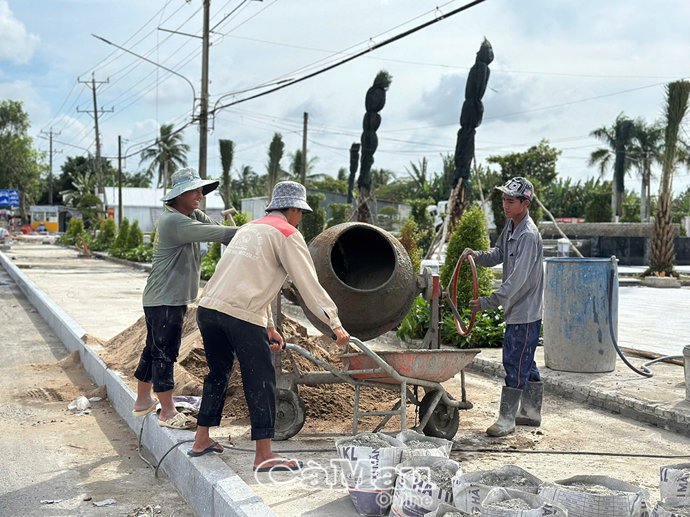 Tại Vĩnh Lợi, trước khu vực trung tâm hành chính xã, các công nhân tất bật làm việc từ sáng sớm đến chiều muộn. Nhịp độ thi công đang được đẩy lên cao. Các hạng mục cải tạo vỉa hè, lắp đặt hệ thống đèn chiếu sáng và trang trí cảnh quan đang dần hoàn thiện.