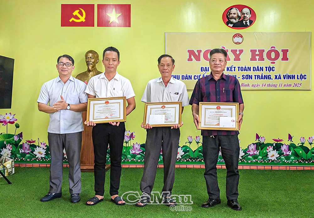 Tại Ngày hội, Uỷ ban MTTQ Việt Nam tỉnh Cà Mau trao bằng khen cho Ban Công tác Mặt trận ấp Vĩnh Bình vì có thành tích xuất sắc trong phát động phong trào, vận động Nhân dân xây dựng nếp sống văn hoá và hoàn thành các tiêu chí nông thôn mới. UBND xã Vĩnh Lộc tặng giấy khen cho 3 tập thể tiêu biểu.