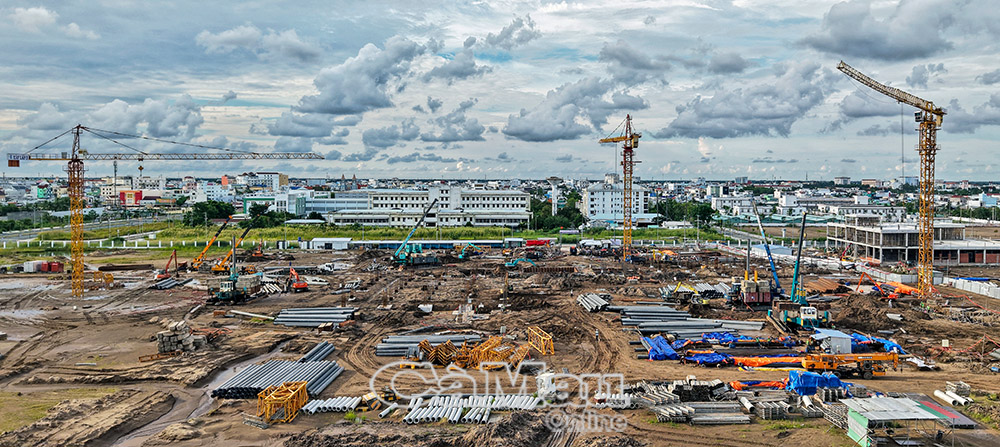 Rộn ràng trên công trường Dự án đầu tư xây dựng Bệnh viện Đa khoa Cà Mau quy mô 1.200 giường bệnh.