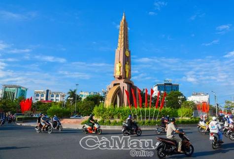 Sắc đỏ khu vực tượng đài tỉnh Cà Mau.