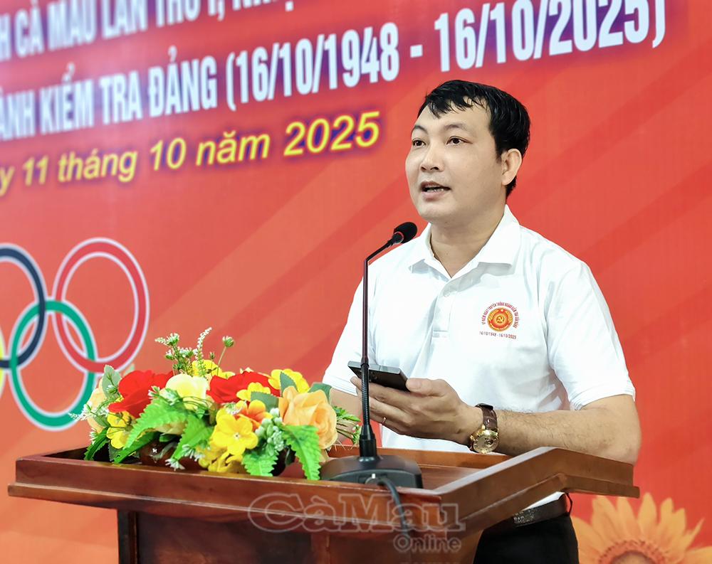 Đồng chí Nguyễn Minh Nhứt, Phó Chủ nhiệm Thường trực Uỷ ban Kiểm tra Tỉnh uỷ, phát biểu khai mạc hội thao.