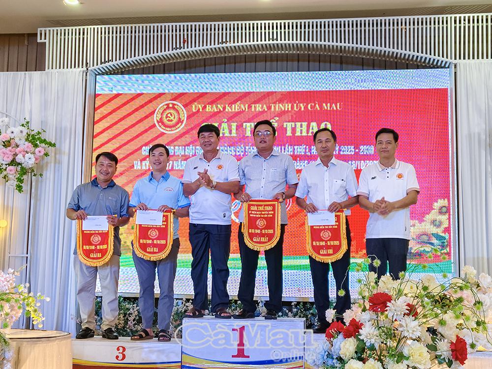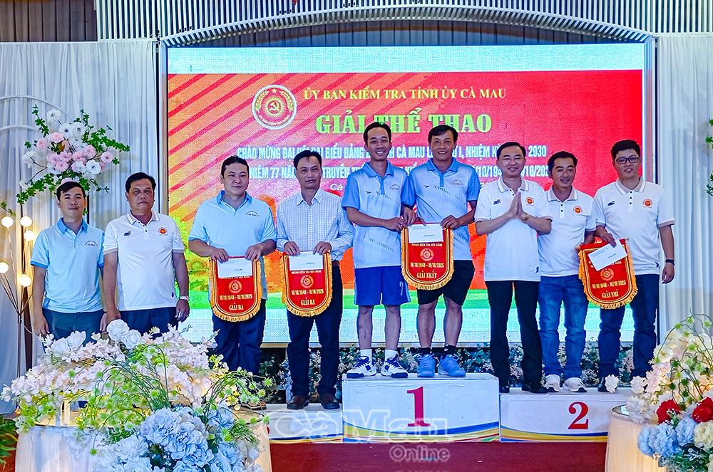 Kết thúc hội thao, đồng chí Phan Thanh Duy, Chủ nhiệm Uỷ ban Kiểm tra Tỉnh uỷ, trao giải cho các vận động viên môn cầu lông.