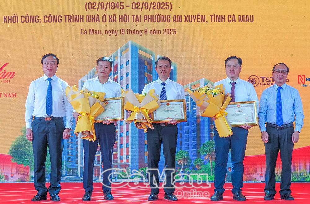 Tại lễ khởi công, UBND tỉnh Cà Mau trao bằng khen cho Tập đoàn T&T Group, Công ty TNHH T&T Land Cà Mau vì những đóng góp tích cực trong việc triển khai chương trình nhà ở xã hội, khẳng định sự đồng hành bền chặt giữa chính quyền và doanh nghiệp trong mục tiêu phát triển lâu dài.