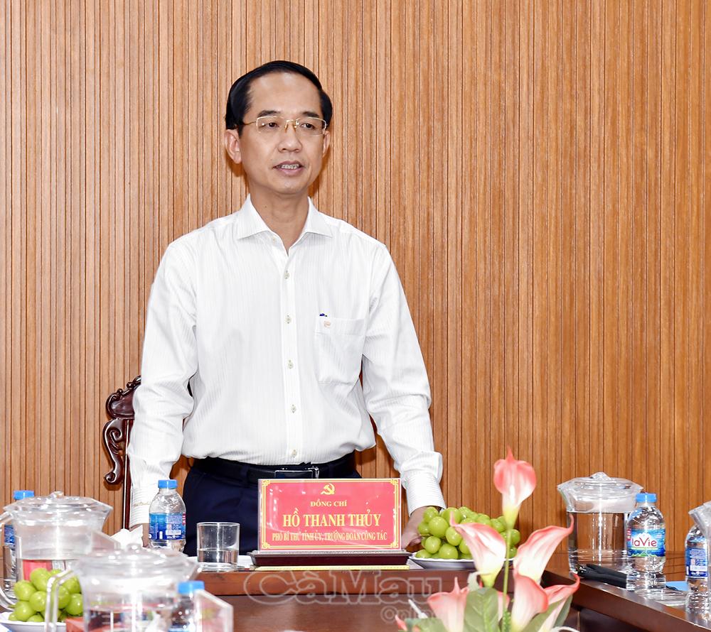 Đồng chí Hồ Thanh Thuỷ, Phó Bí thư Tỉnh uỷ, Chủ tịch Uỷ ban MTTQ Việt Nam tỉnh Cà Mau phát biểu tại buổi làm việc.