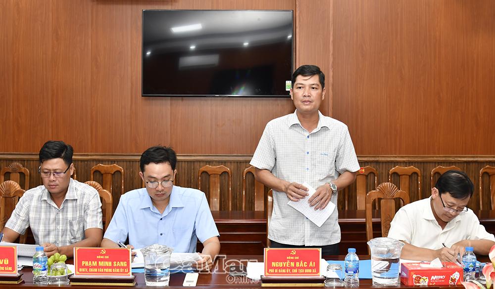 Đồng chí Nguyễn Bắc Ái, Phó Bí thư Đảng uỷ, Chủ tịch UBND xã Cái Nước thông tin những khó khăn, vướng mắc trong quá trình triển khai nhiệm vụ của địa phương.