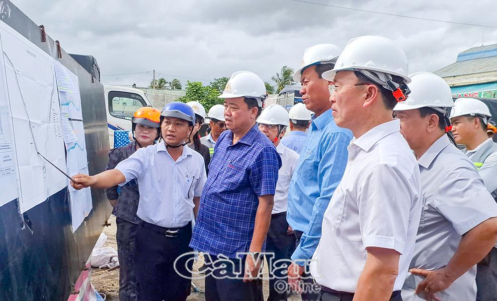 Cán bộ Phòng Kinh tế phường Bạc Liêu báo cáo với lãnh đạo tỉnh về tiến độ công trình.