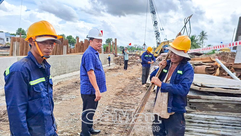 Phó Bí thư Thường trực Tỉnh uỷ Huỳnh Quốc Việt thăm hỏi, động viên công nhân tại công trường.