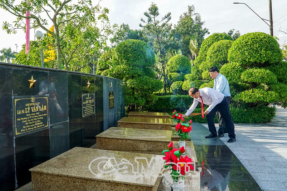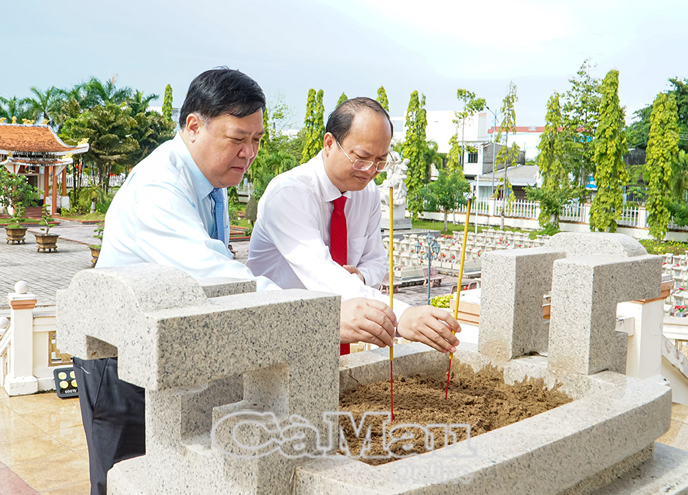 Bí thư Tỉnh ủy Nguyễn Hồ Hải và Chủ tịch UBND tỉnh Phạm Thành Ngại dâng hương tại Nghĩa trang liệt sĩ tỉnh (phường An Xuyên).