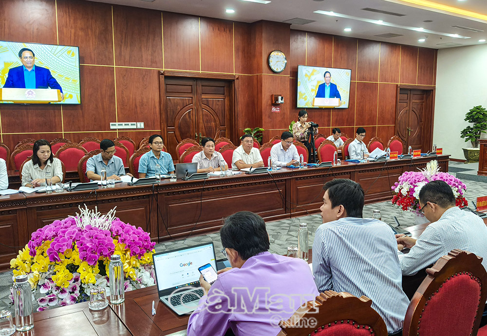 Tại điểm cầu Cà Mau, Phó Bí thư Tỉnh uỷ, Chủ tịch UBND tỉnh Phạm Thành Ngại cùng Phó Chủ tịch UBND tỉnh Lê Văn Sử chủ trì.