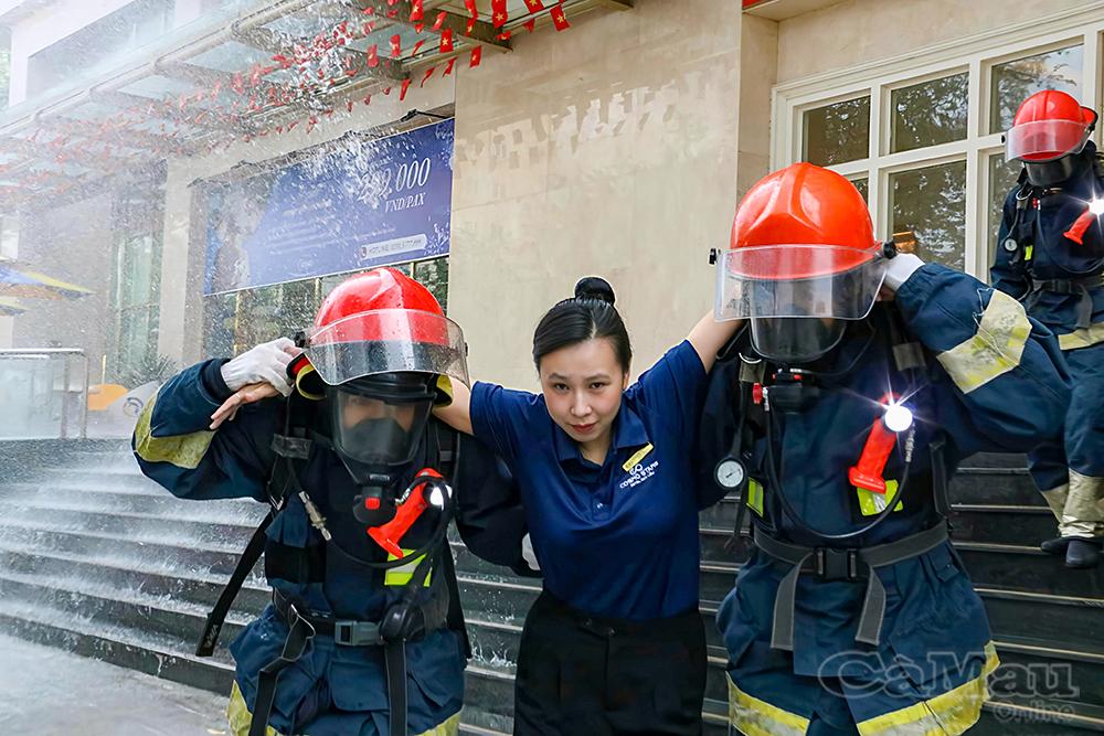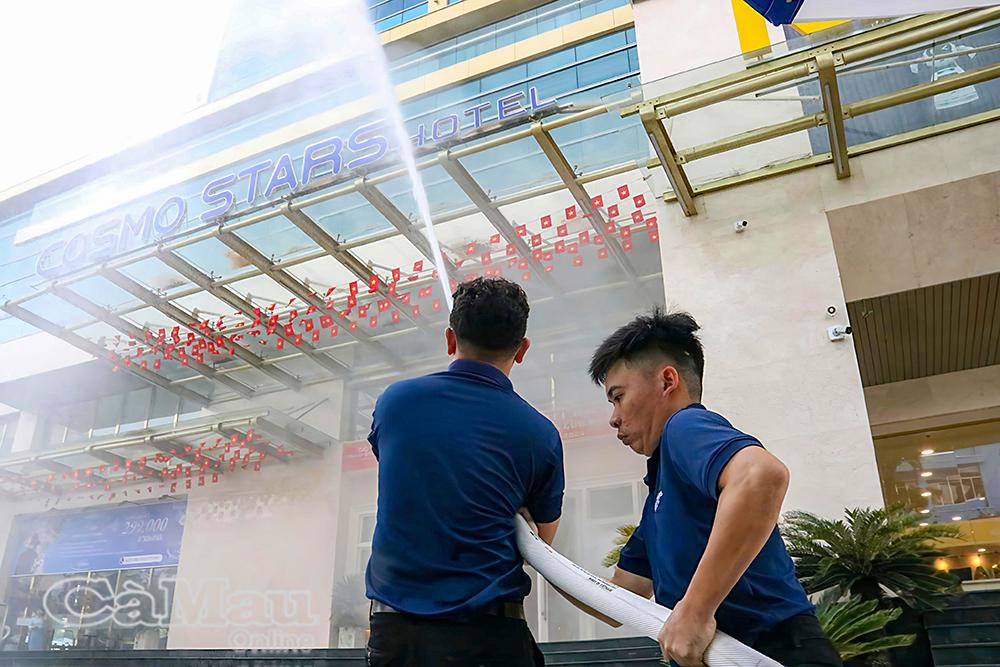Theo tình huống giả định, khoảng 13 giờ 30, một đám cháy bất ngờ bùng phát tại khu vực nhà kho tầng trệt của khách sạn Cosmo Stars Bạc Liêu. Ngay khi phát hiện, nhân viên khách sạn nhanh chóng hô hoán, báo động và triển khai các biện pháp ứng phó ban đầu. Đội PCCC&CNCH cơ sở kịp thời có mặt, cắt điện khu vực cháy để đảm bảo an toàn, hướng dẫn khách và nhân viên di chuyển ra nơi an toàn, tổ chức cứu người bị nạn, sử dụng phương tiện chữa cháy tại chỗ để khống chế, chống cháy lan và di chuyển tài sản ra khỏi khu vực nguy hiểm.