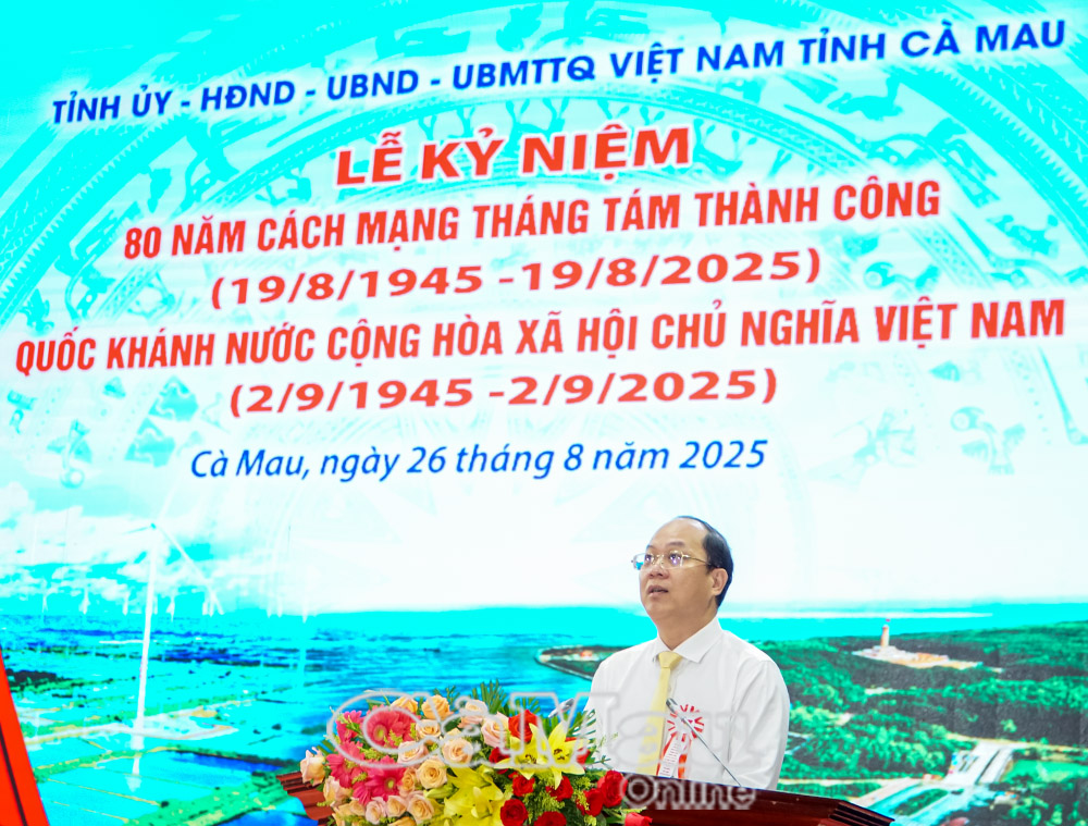Chiều 26/8, Tỉnh uỷ, HĐND, UBND và Uỷ ban MTTQ Việt Nam tỉnh Cà Mau trang trọng tổ chức Lễ kỷ niệm 80 năm Cách mạng tháng Tám (19/8/1945-19/8/2025) và Quốc khánh nước Cộng hoà Xã hội Chủ nghĩa Việt Nam (2/9/2025).