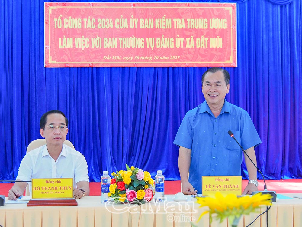 Kết luận buổi làm việc, đồng chí Lê Văn Thành, Phó Chủ nhiệm Uỷ ban Kiểm tra Trung ương, ghi nhận và đánh giá cao nỗ lực của xã Đất Mũi trong việc vận hành hiệu quả mô hình chính quyền địa phương hai cấp. Đồng chí đề nghị địa phương tiếp tục phát huy kết quả đạt được, nâng cao hơn nữa hiệu quả hoạt động bộ máy; đồng thời chú trọng quán triệt, thực hiện tốt các chủ trương, nghị quyết của Trung ương và địa phương. Công tác cán bộ cần được rà soát, sắp xếp phù hợp để đáp ứng tốt yêu cầu nhiệm vụ trong giai đoạn tới.