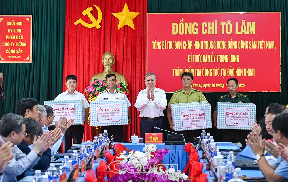 Tổng Bí thư Tô Lâm tặng quà cho các lực lượng đứng chân làm nhiệm vụ trên cụm đảo Hòn Khoai.