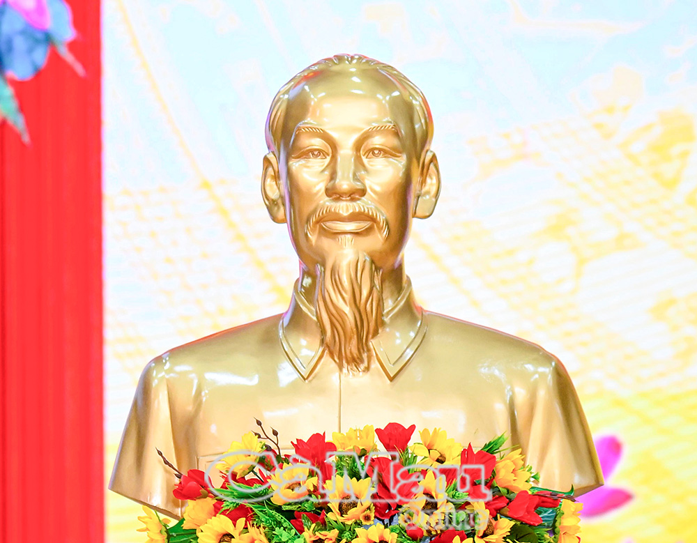 Tại buổi lễ, thừa uỷ quyền của Quân uỷ Trung ương - Bộ Quốc phòng, Thiếu tướng Huỳnh Chiến Công đã trao Tượng chân dung Chủ tịch Hồ Chí Minh đến đại diện lãnh đạo các xã, phường trong tỉnh.