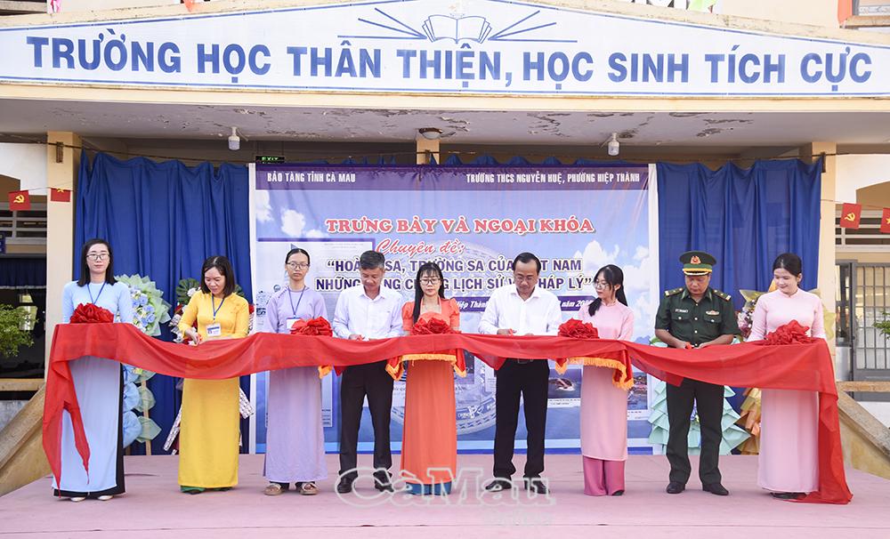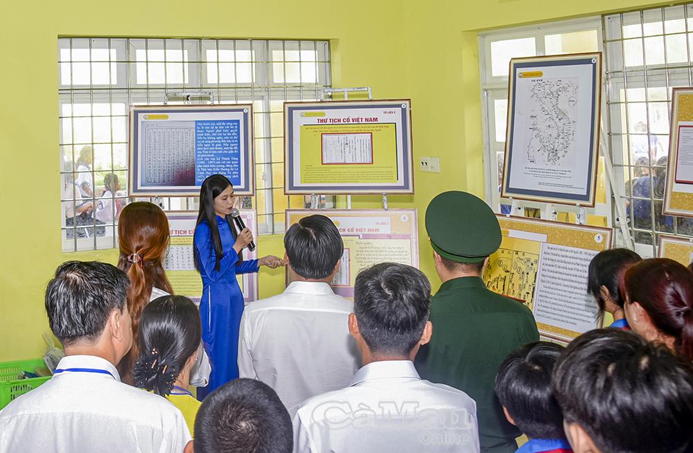 Hơn 700 học sinh Trường THCS Nguyễn Huệ tham quan, nghe thuyết minh về các tư liệu, bản đồ khẳng định chủ quyền của Việt Nam đối với hai quần đảo Hoàng Sa và Trường Sa.