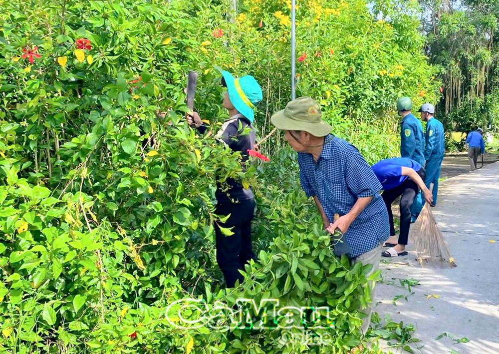 Người dân ấp Mỹ Trinh cùng với tuổi trẻ xã Châu Thới ra quân dọn dẹp vệ sinh, phát quang bụi rậm.