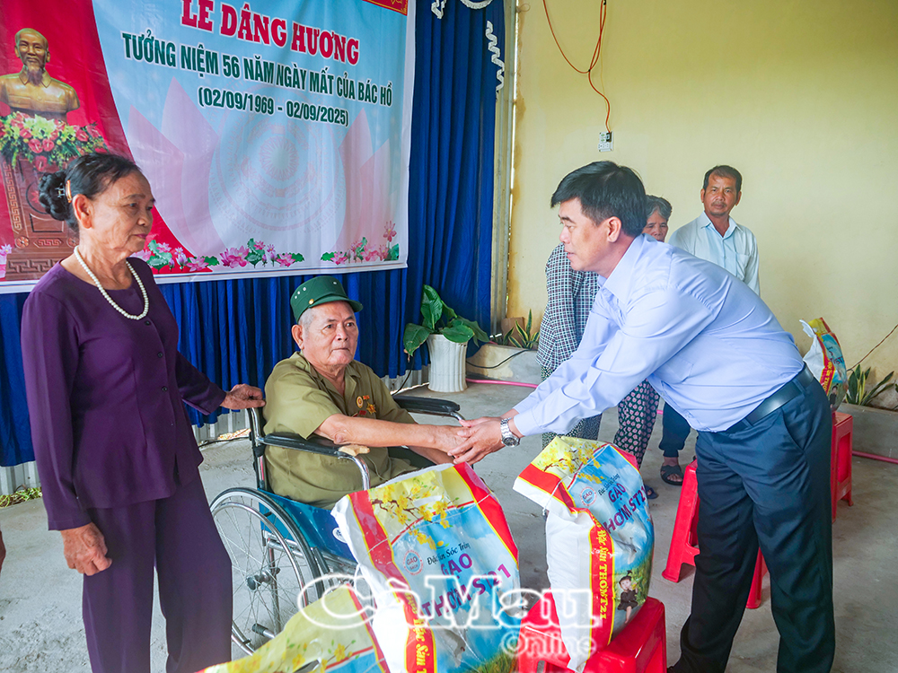 Lãnh đạo xã thăm hỏi, tặng quà cho gia đình cựu chiến binh và hộ nghèo.
