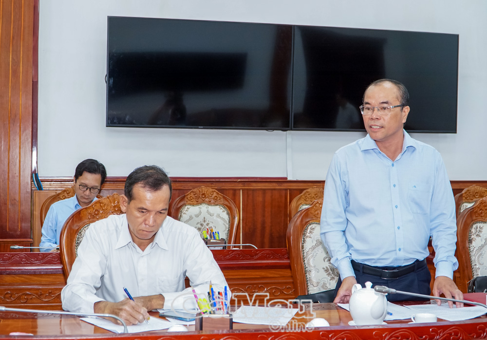 Đồng chí Ngô Minh Toàn, Phó Tổng biên tập Báo và Phát thanh, Truyền hình Cà Mau, báo cáo tình hình hoạt động của đơn vị tại buổi làm việc.