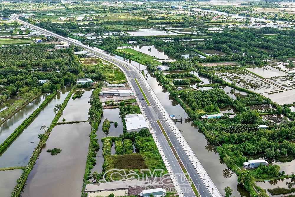 Trong nhiệm kỳ 2025-2030, Cà Mau tiếp tục ưu tiên hình thành các trục giao thông kết nối, ngoài thúc đẩy phát triển kinh tế liên vùng còn hướng tới mở rộng không gian phát triển đô thị. (Ảnh: Tuyến đường từ các xã: Đầm Dơi, Trần Phán về trung tâm tỉnh qua địa bàn phường Hoà Thành).