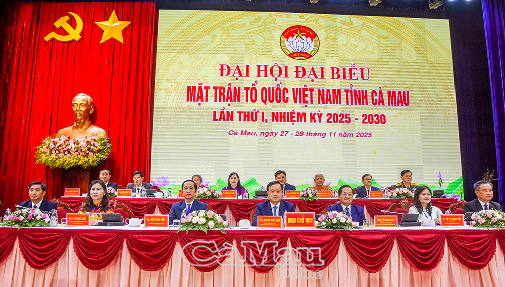 Chiều 27/11, tại Trung tâm Hội nghị tỉnh, Đại hội Đại biểu Mặt trận Tổ quốc Việt Nam tỉnh Cà Mau lần thứ I, nhiệm kỳ 2025-2030, tiến hành ngày làm việc thứ nhất. Đây là sự kiện chính trị quan trọng, diễn ra sau quá trình sắp xếp, tinh gọn bộ máy, thực hiện chính quyền địa phương 2 cấp.