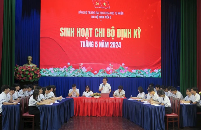Chi bộ sinh viên 5, Đảng bộ Trường Đại học Khoa học Tự nhiên tổ chức sinh hoạt chi bộ mẫu. Ảnh: Cổng TTĐT TPHCM