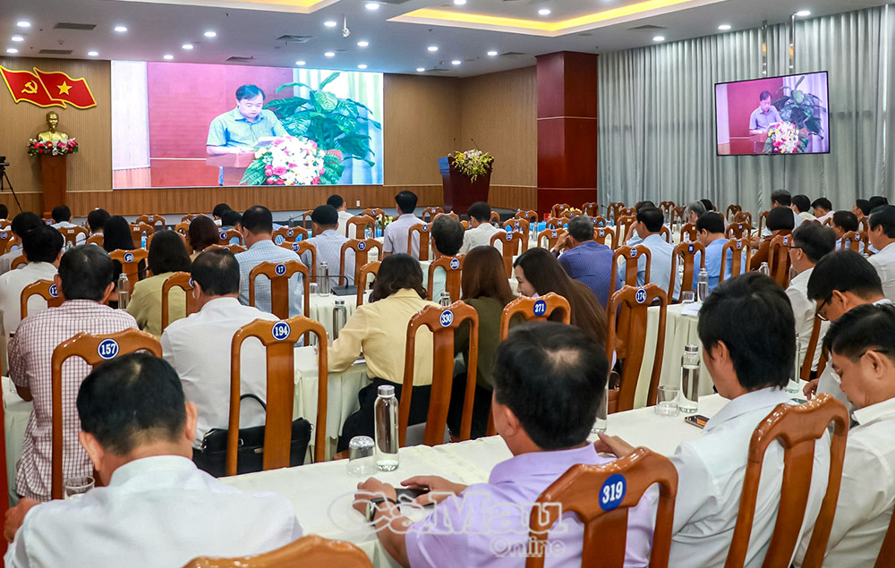 Đại biểu tham dự các điểm cầu nghe đồng chí Huỳnh Quốc Việt, Phó Bí thư Thường trực Tỉnh uỷ, Chủ tịch Uỷ ban MTTQ Việt Nam tỉnh Cà Mau, thông báo nhanh kết quả Hội nghị lần thứ 14 BCH Trung ương Đảng khoá XIII.