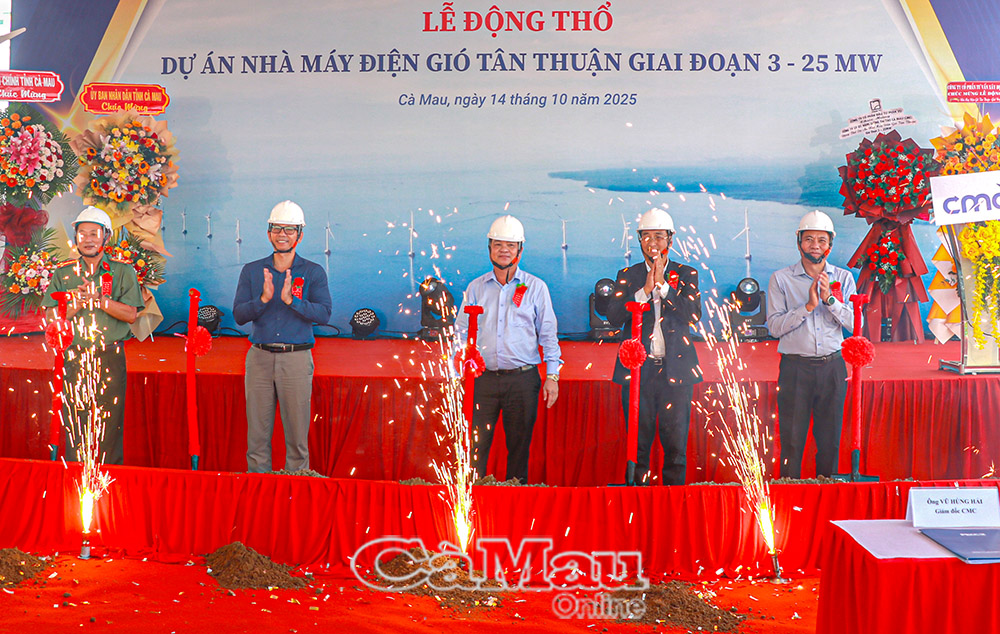 Sự kiện khởi công Nhà máy Điện gió Tân Thuận - giai đoạn 3 khẳng định tầm nhìn chiến lược của Cà Mau trong khai thác tiềm năng năng lượng sạch.