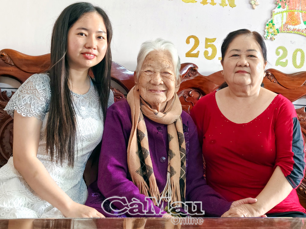 Ở tuổi 99, bà Út Bình vẫn minh mẫn, sống vui khoẻ bên con cháu.