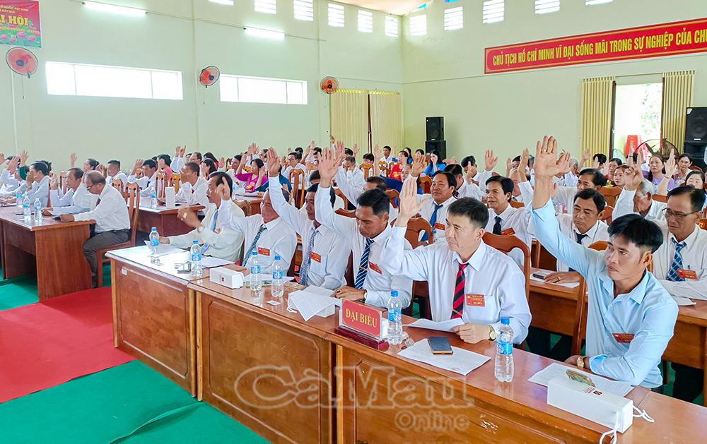 Đại biểu biểu quyết hiệp thương của 56 vị tham gia Uỷ ban MTTQ Việt Nam xã Đất Mũi khoá I, nhiệm kỳ 2025-2030.