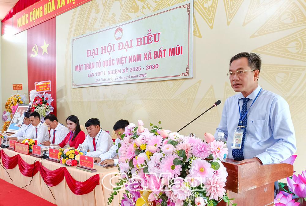 Phát biểu chỉ đạo, đồng chí Nguyễn Văn Khởi, Phó Chủ tịch Uỷ ban MTTQ Việt Nam tỉnh Cà Mau, ghi nhận và biểu dương những thành tích mà Uỷ ban MTTQ xã Đất Mũi đã đạt được trong nhiệm kỳ vừa qua. Đồng chí đề nghị nhiệm kỳ tới, MTTQ xã tiếp tục phát huy vai trò nòng cốt trong việc tập hợp, xây dựng khối đại đoàn kết toàn dân, khuyến khích Nhân dân phát huy quyền làm chủ, tích cực tham gia xây dựng Đảng và chính quyền. Đồng thời, thực hiện tốt quy chế dân chủ ở cơ sở, đổi mới nội dung và phương thức hoạt động, bám sát nhiệm vụ chính trị địa phương, củng cố khối đại đoàn kết, duy trì và phát huy hiệu quả Quỹ “Vì người nghèo”, đảm bảo sự đồng thuận về tư tưởng và hành động, hướng tới mục tiêu giữ vững ổn định chính trị - xã hội, xây dựng Đảng và chính quyền trong sạch, vững mạnh.