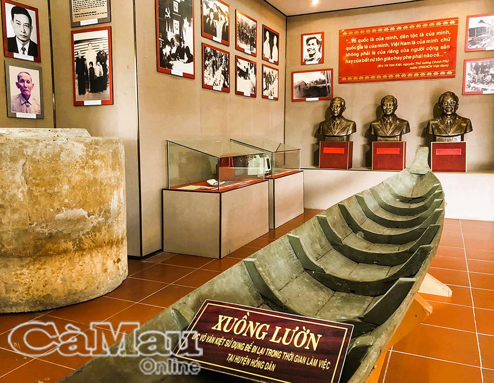 Hiện vật chiếc xuồng lườn đồng chí Võ Văn Kiệt sử dụng để đi lại trong thời gian làm việc tại huyện Hồng Dân thời kháng chiến.
