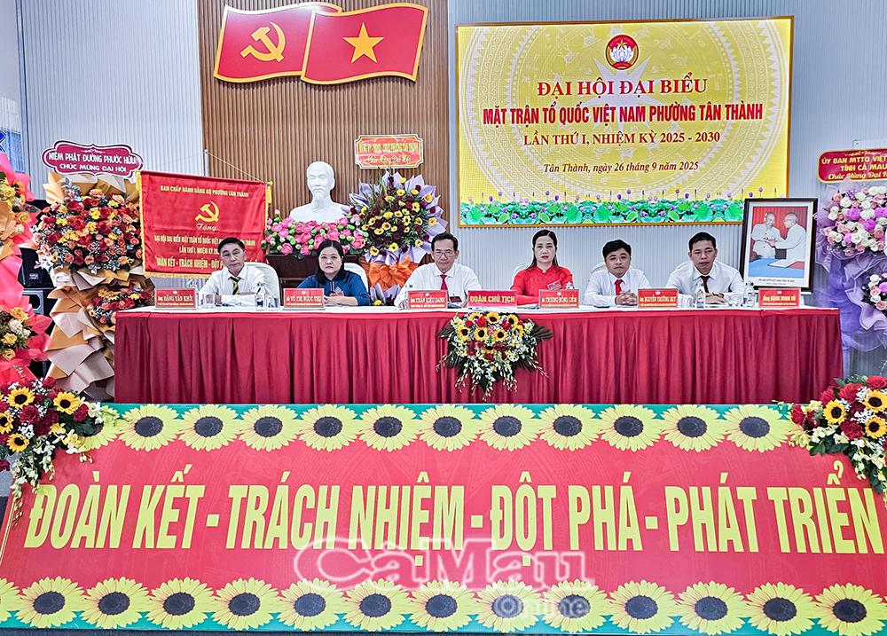 Đại hội MTTQ Việt Nam phường Tân Thành lần thứ I đã mở ra chặng đường mới, hun đúc ý chí và khát vọng phát triển. Phát huy sức mạnh đoàn kết, tinh thần đổi mới và quyết tâm hành động, Tân Thành hướng tới mục tiêu trở thành phường động lực, đô thị thông minh – văn minh – hiện đại – giàu đẹp của tỉnh Cà Mau.
