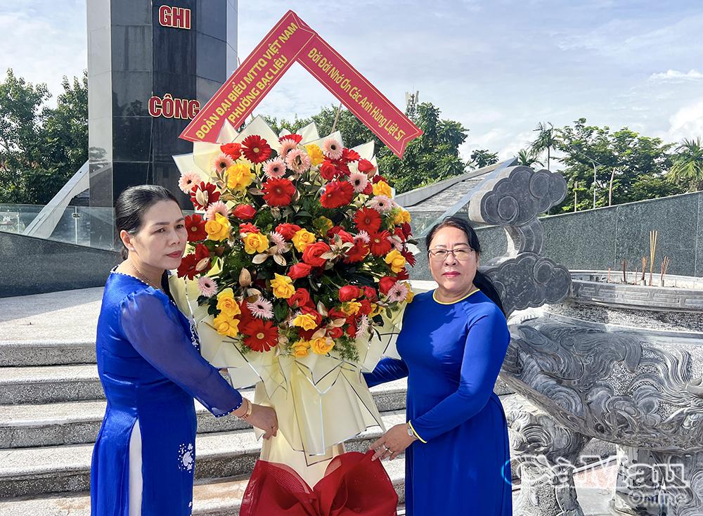 Trước đại hội, Ban Thường trực Uỷ ban MTTQ Việt Nam phường Bạc Liêu dâng hoa tại Đài tưởng niệm các anh hùng liệt sĩ tỉnh.
