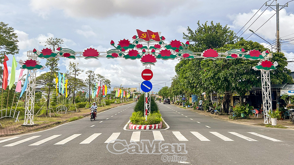 Xã Trần Văn Thời trang trí cờ hoa rực rỡ chào mừng Đại hội đại biểu Đảng tỉnh Cà Mau lần thứ I, nhiệm kỳ 2025-2030. Ảnh: Phong Nguyên