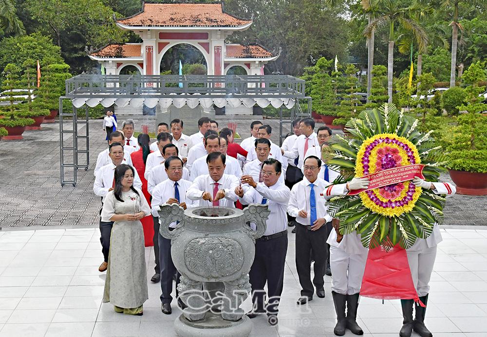 Trước khi tiến hành đại hội, cán bộ, đảng viên của Đảng bộ các cơ quan Đảng tỉnh đến dâng hương Chủ tịch Hồ Chí Minh tại Khu tưởng niệm Người.