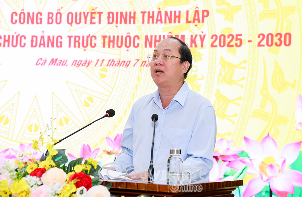 Tại hội nghị, đồng chí Lê Minh Ý, Uỷ viên BTV Tỉnh uỷ, Phó Trưởng Ban Tổ chức Tỉnh uỷ, công bố các quyết định quan trọng của Tỉnh uỷ Cà Mau về việc thành lập Đảng bộ Quân sự tỉnh là đảng bộ cấp trên trực tiếp của tổ chức cơ sở đảng trực thuộc Đảng bộ tỉnh Cà Mau, trên cơ sở hợp nhất Đảng bộ Quân sự hai tỉnh Cà Mau và Bạc Liêu. Theo đó, Đảng bộ Quân sự tỉnh nhiệm kỳ 2025-2030 có 10 tổ chức đảng với 1.515 đảng viên.