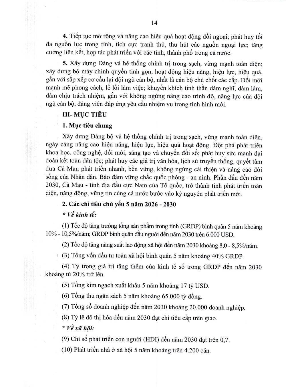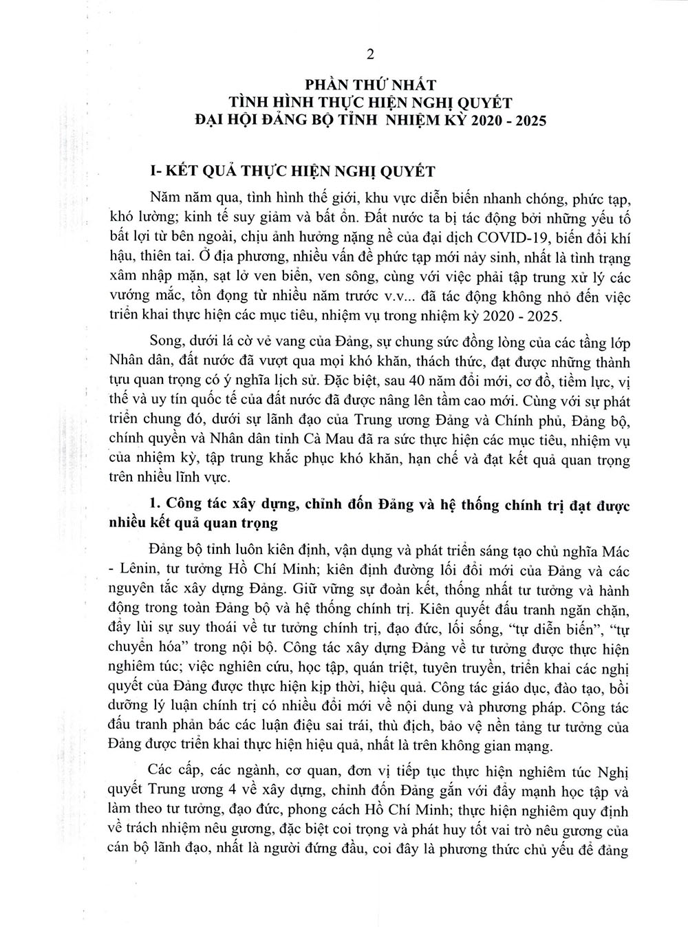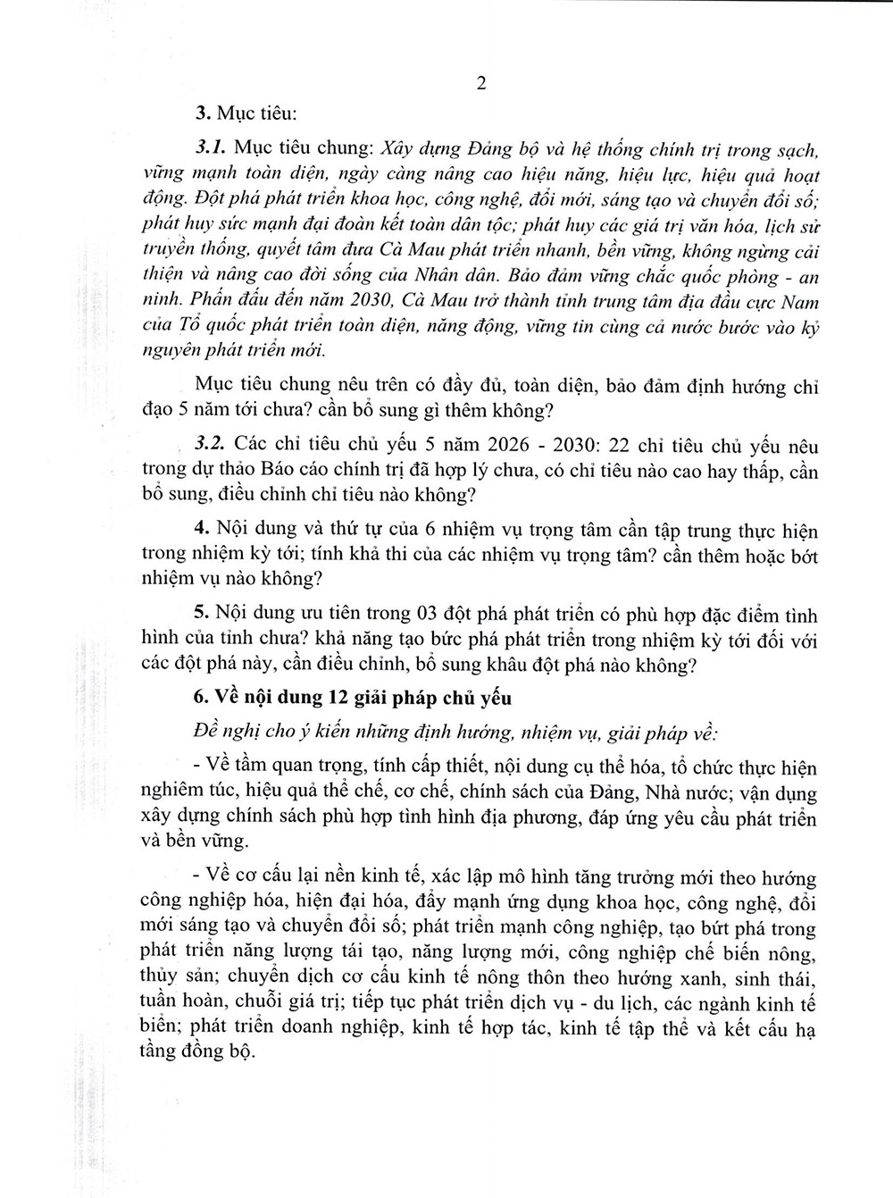 Báo Cà Mau Online trân trọng giới thiệu toàn văn Dự thảo Văn kiện trình Đại hội đại biểu Đảng bộ tỉnh nhiệm kỳ 2025 – 2030 để cán bộ, đảng viên và Nhân dân đóng góp ý kiến.