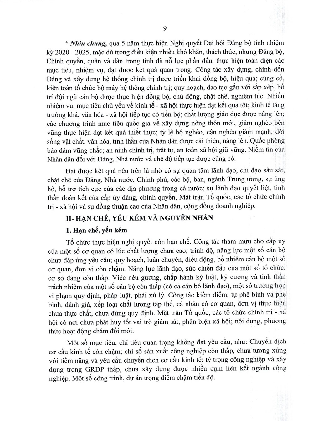 Dự thảo Văn kiện trình Đại hội đại biểu Đảng bộ tỉnh nhiệm kỳ 2025 – 2030