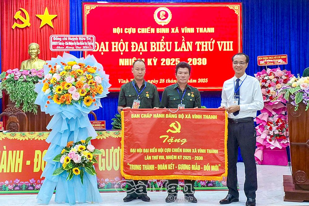 Đại diện Tỉnh uỷ, Hội CCB tỉnh, Đảng uỷ và UBND xã Vĩnh Thanh chúc mừng Ban Chấp hành Hội CCB xã nhiệm kỳ 2025-2030.