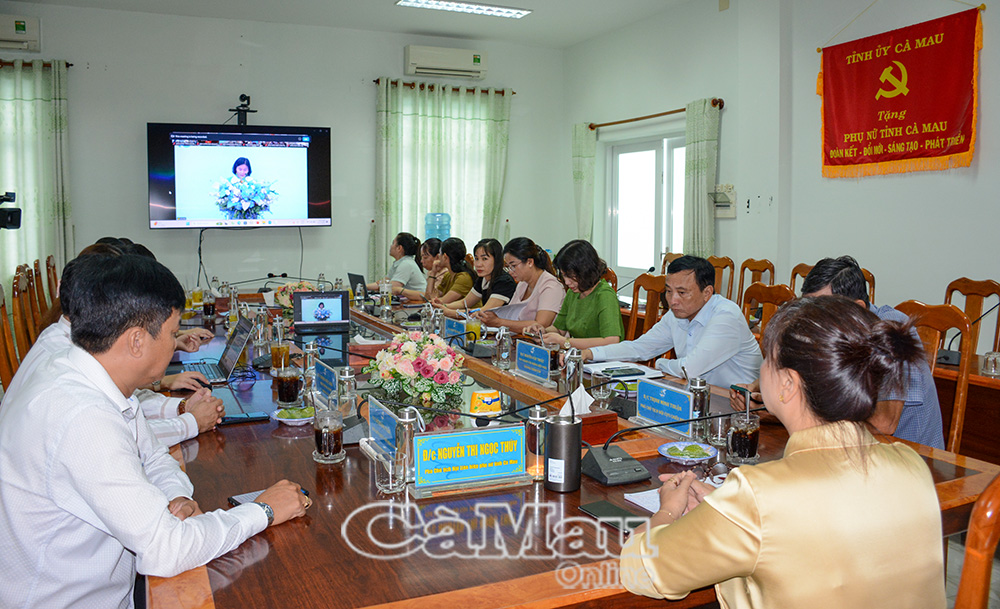 Đại biểu điểm cầu Cà Mau tham dự hội nghị.
