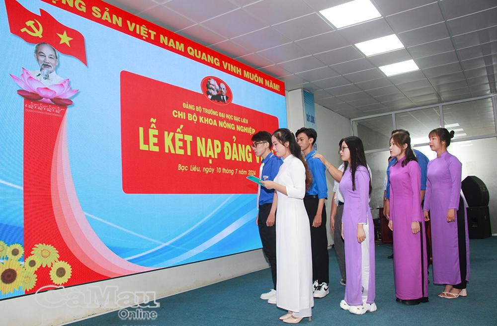Sinh viên Khoa Nông nghiệp, Trường Đại học Bạc Liêu được kết nạp Đảng thực hiện nghi thức tuyên thệ.