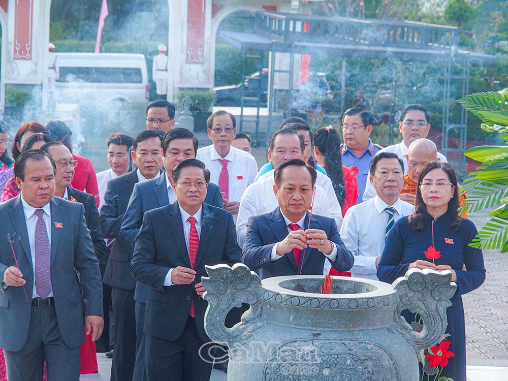 Trước khi khai mạc kỳ họp, Đoàn Đại biểu HĐND tỉnh đến dâng hương, dâng hoa tại Khu tưởng niệm Chủ tịch Hồ Chí Minh.