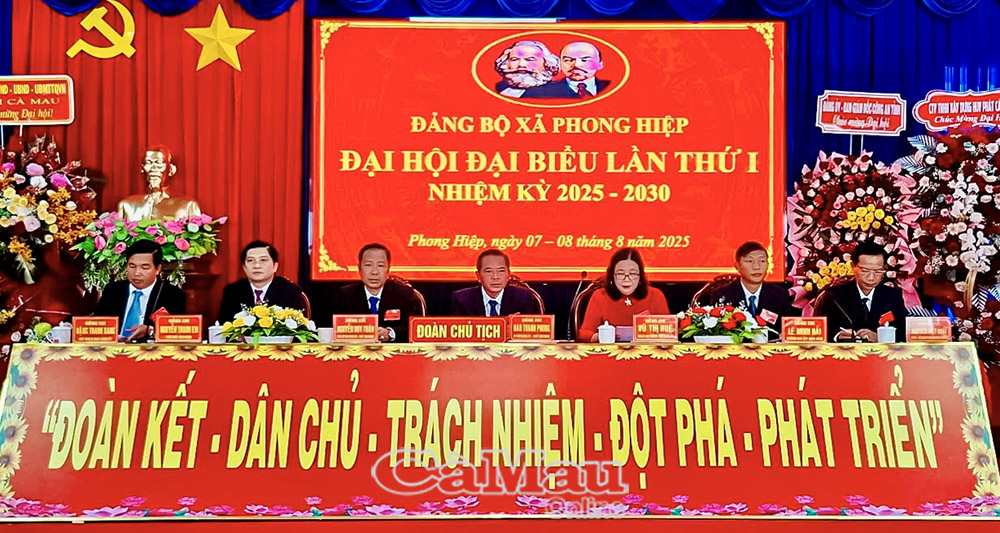 Đại hội cũng đã công bố quyết định của Ban Thường vụ Tỉnh uỷ Cà Mau về chỉ định Ban Chấp hành Đảng bộ, Ban Thường vụ Đảng uỷ, Uỷ ban kiểm tra Đảng uỷ xã Phong Hiệp, nhiệm kỳ 2025-2030. Đồng chí Đào Thanh Phong được chỉ định giữ chức vụ Bí thư Đảng uỷ xã nhiệm kỳ 2025-2030.