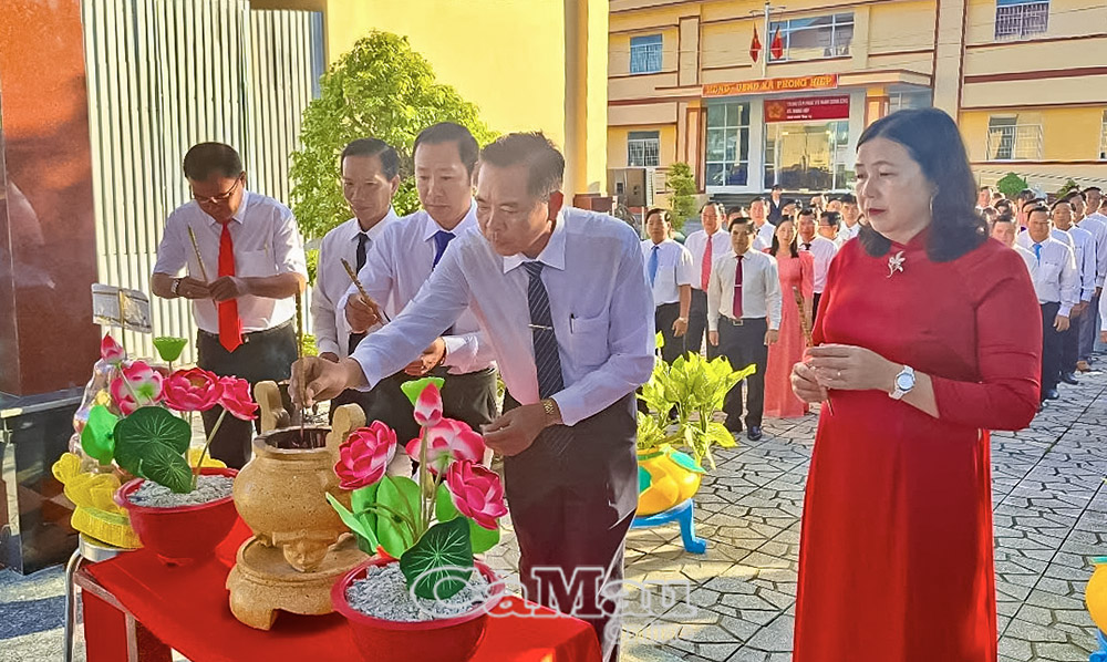 Trước khi diễn ra đại hội, các đại biểu đến dâng hoa, dâng hương tại Nhà bia ghi danh liệt sĩ của xã.