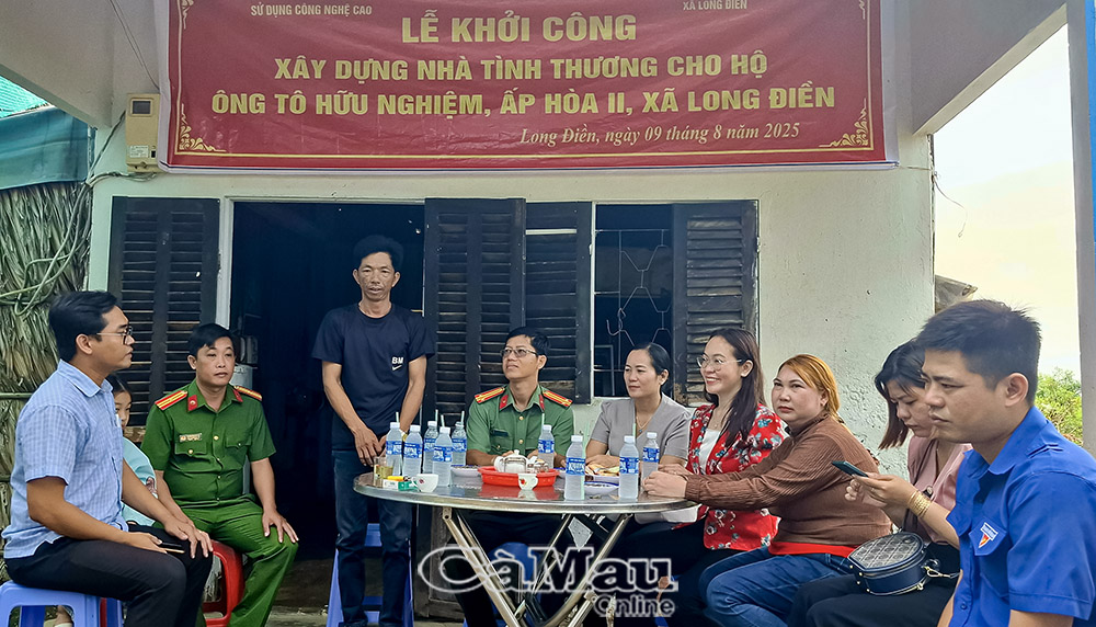 Tại ấp Hòa II, đại diện lãnh đạo xã Long Điền cùng các ban, ngành, đoàn thể và Phòng An ninh mạng Công an tỉnh Cà Mau đã tổ chức Lễ khởi công xây dựng nhà tình thương cho hộ ông Tô Hữu Nghiệm, là hộ có hoàn cảnh khó khăn trên địa bàn. Công trình có tổng kinh phí 70 triệu đồng, từ nguồn hỗ trợ của mạnh thường quân, thể hiện tinh thần “lá lành đùm lá rách”, chăm lo an sinh xã hội.