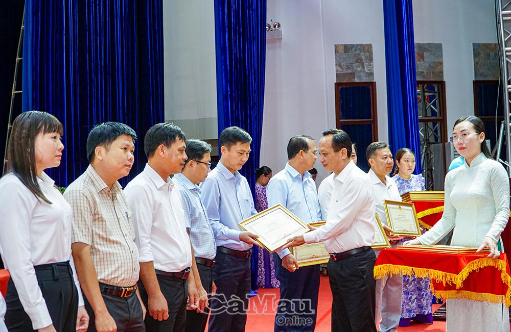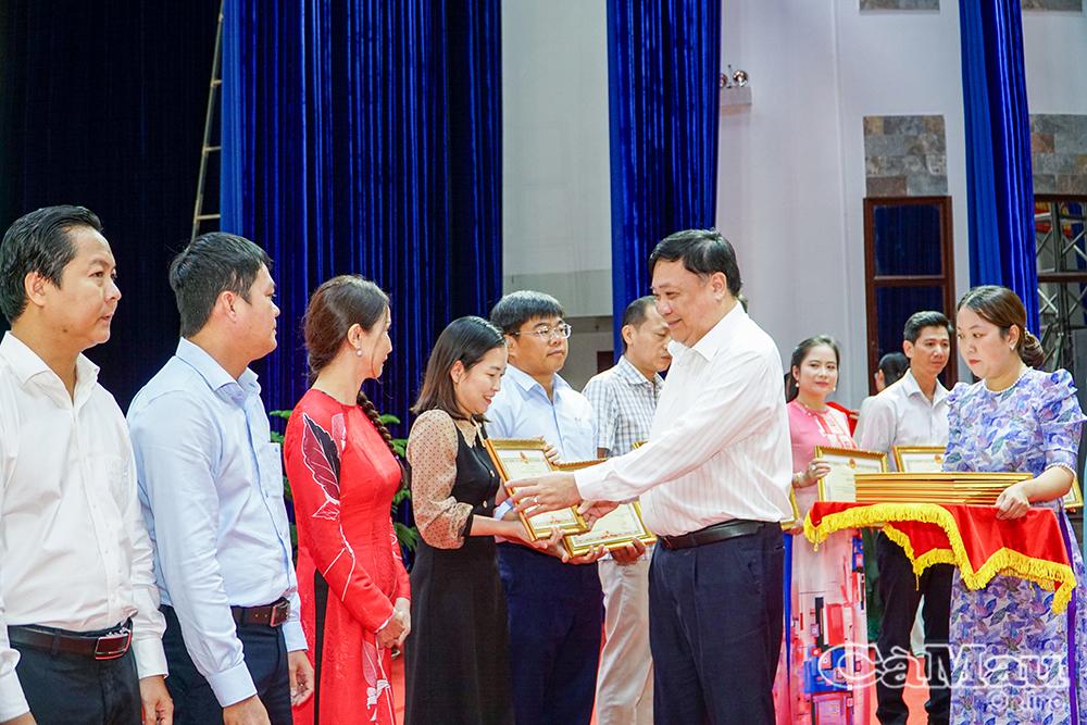 Phó Bí thư Tỉnh uỷ, Chủ tịch HĐND tỉnh Phạm Văn Thiều trao bằng khen của Chủ tịch UBND tỉnh cho các cá nhân có thành tích xuất sắc đóng góp vào thành công Đại hội.